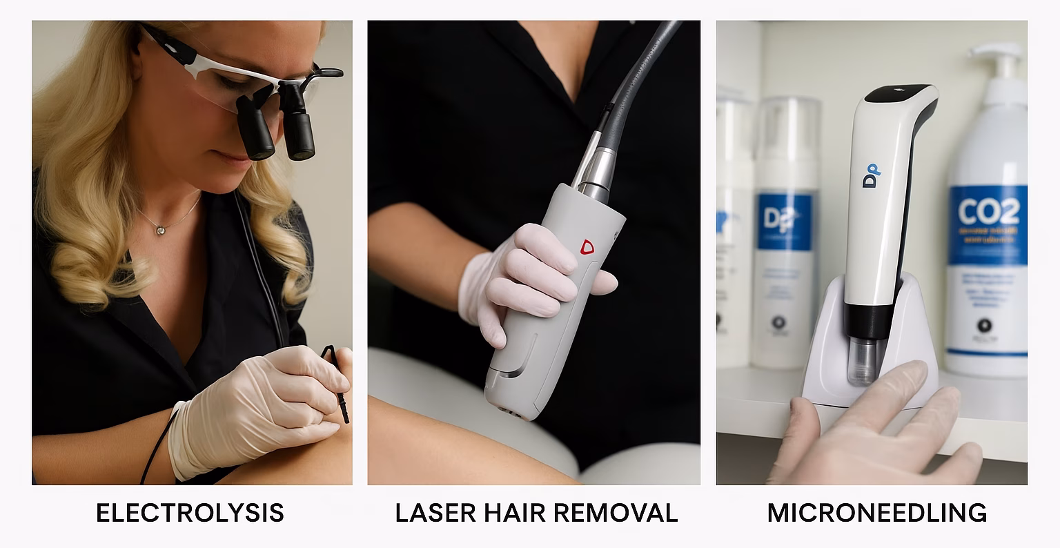 That’s why I now offer professional training in electrolysis, laser hair removal, and microneedling—helping both new and experienced practitioners build real confidence and clinical expertise.